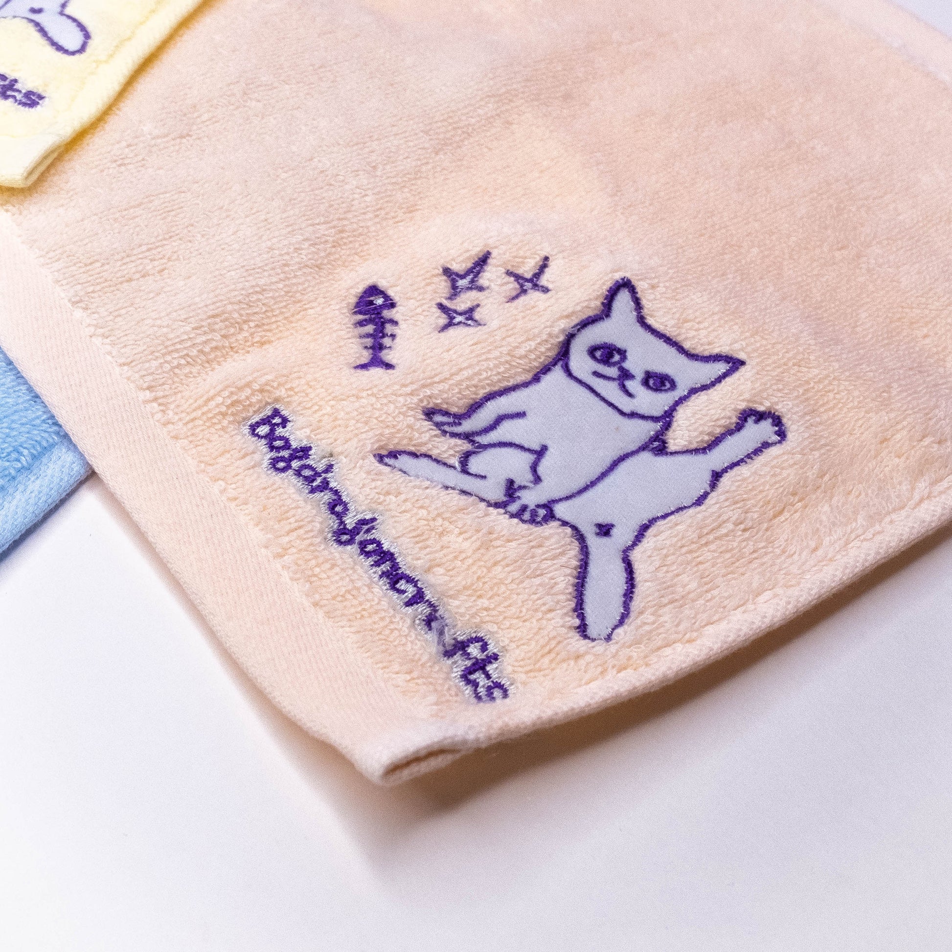 Serviette pour les mains en coton brodée chat
